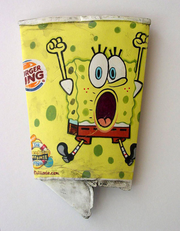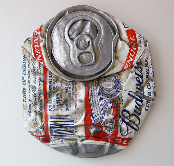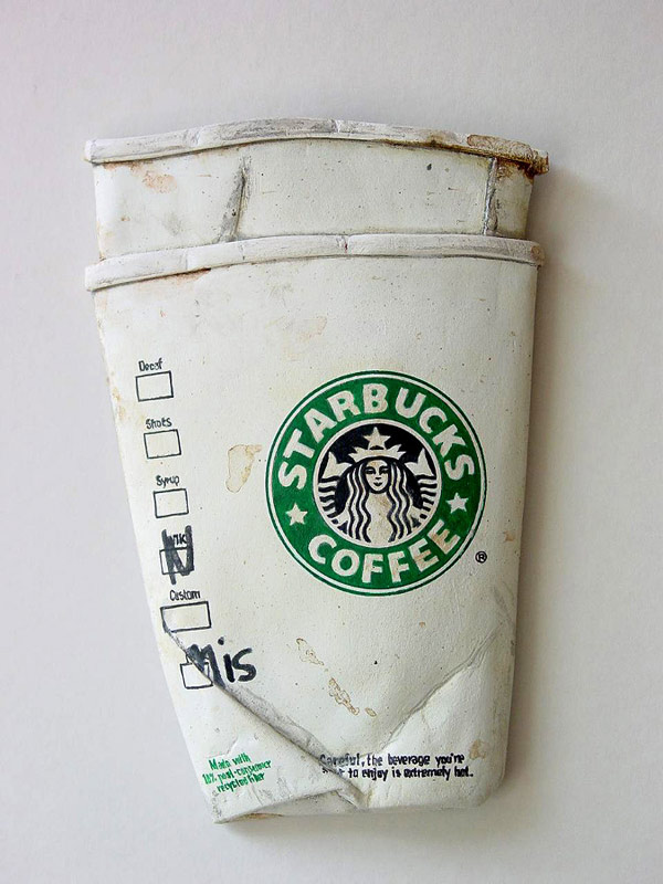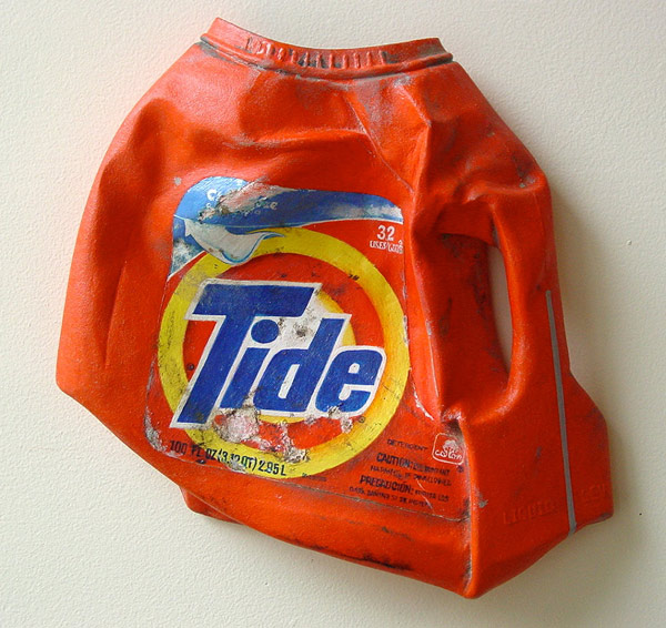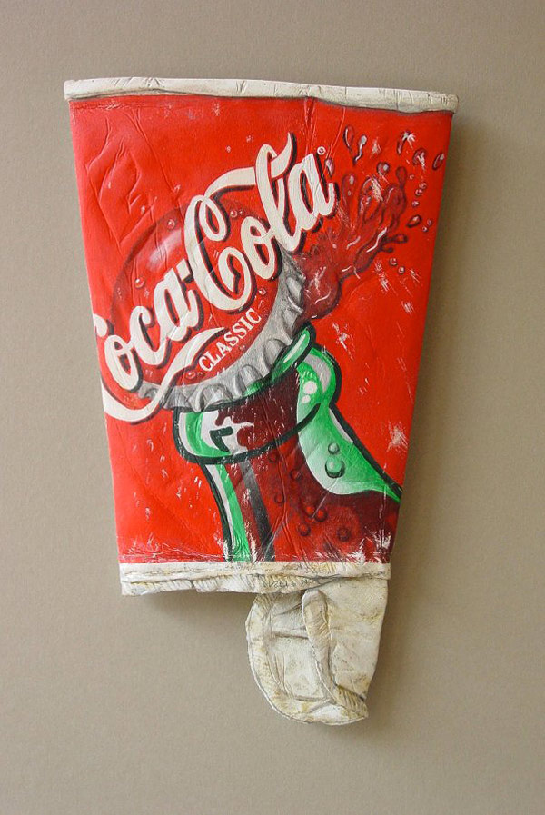 Concretamente está pieza y todas las que pueden ver más abajo se encuentran dentro de la serie titulada “From The Street” (De la Calle). Obras cuidadosamente elaboradas, talladas y pintadas donde Tom trata de representar objetos cotidianos a través de la técnica pictórica “Trampantojo” , que consiste en intentar engañar a la vista jugando con el entorno arquitectónico ya sea éste real o simulado. En este caso simulado ya que en el reverso de cada pieza encontramos madera de Tilo. Además de una descripción de dónde y cuando encontró los objetos después manipulados para obtener este resultado.