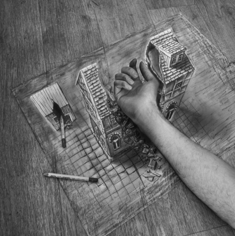 Hoy os escribo sobre Ramon Bruin. A simple vista es un chico normal pero sus manos tienen un superpoder cuando tocan un lápiz. Ramon, de origen holandés, crea dibujos a lápiz que parecen salirse de la hoja una vez que los fotografía. Puro efecto 3D. El artista le llama a esto «Ilusionismo óptico» que, según él, es «una combinación de dibujo y fotografía».