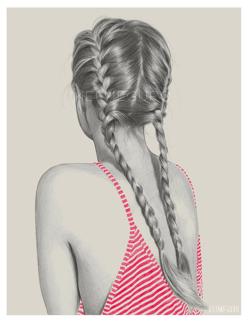 La ilustradora y diseñadora gráfica japonesa Kei Meguro dibuja con lápices obras de estilo realista. Suele trabajar a partir de fotografías por eso la mayoría de sus creaciones son retratos de personas.
