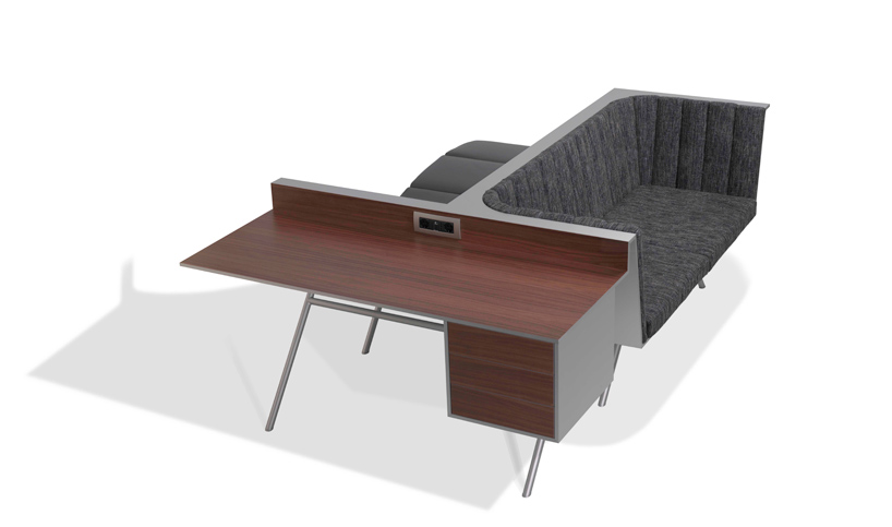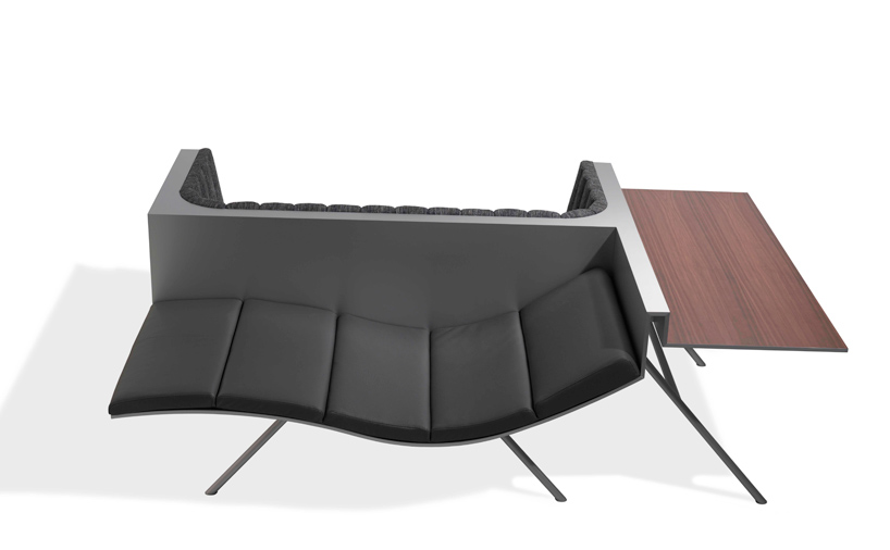 Cada vez más los límites entre el trabajo y el ocio se disuelven en un mismo lugar. En esa idea se ha basado David Adjaye para crear un sistema mobiliario que combina una mesa y escritorio, sofá y chaise lounge en una misma isla autosuficiente.