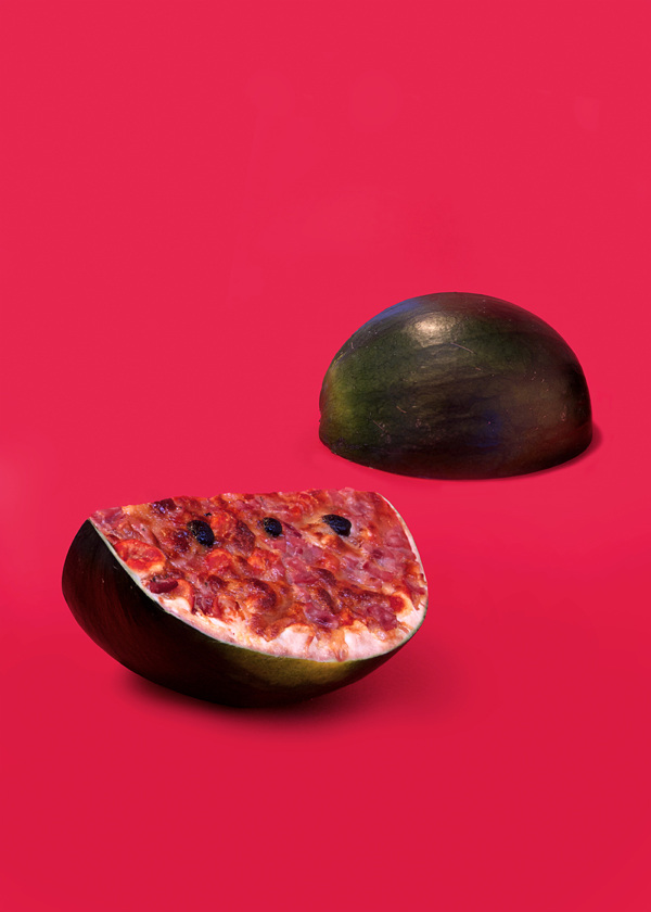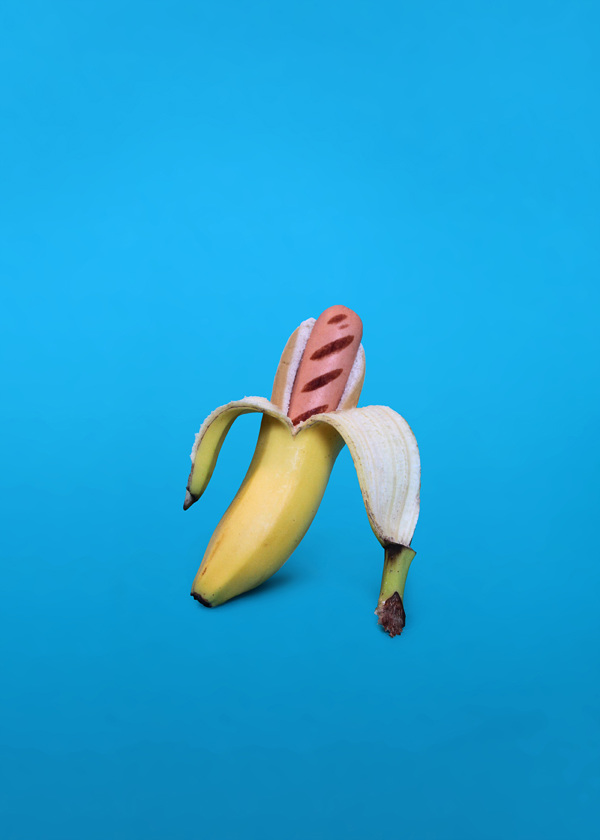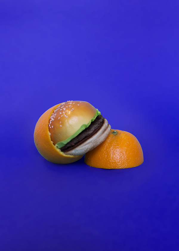 El fotógrafo francés Arnaud Deroudilhe ha realizado una serie fotográfica titulada «Junk Fruit» (fruta basura) donde vemos el contraste entre lo sano (la fruta) y lo enfermizo (la comida rápida).
