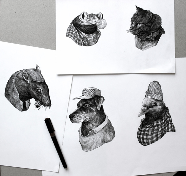 Theo Jan, un artista de Montrouge, Francia, ha dibujado cinco animales de una forma distinta. Los ha humanizado. Al verles con estos ropajes no se me ocurren más que aventuras de lo que les podría pasar a estos cinco colegas.