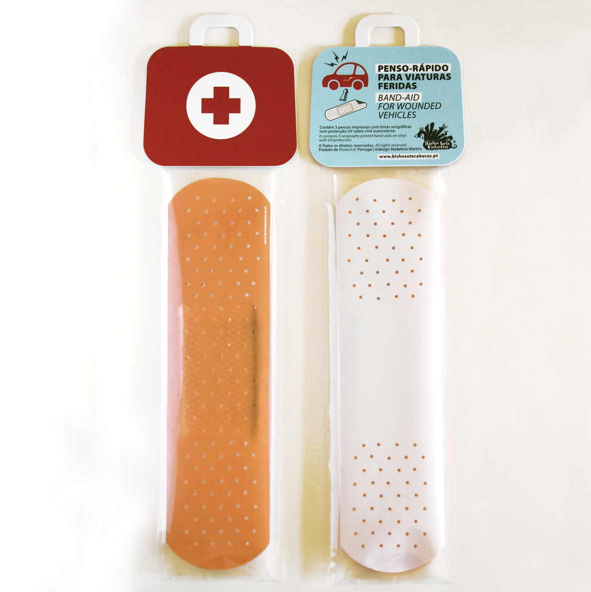 Podría escribir de muchas de sus obras, pero quiero destacar la tirita para coches. Algo tan simple y original que cualquiera querrá tener un pequeño arañazo, rayadura o raspón para lucirlas.