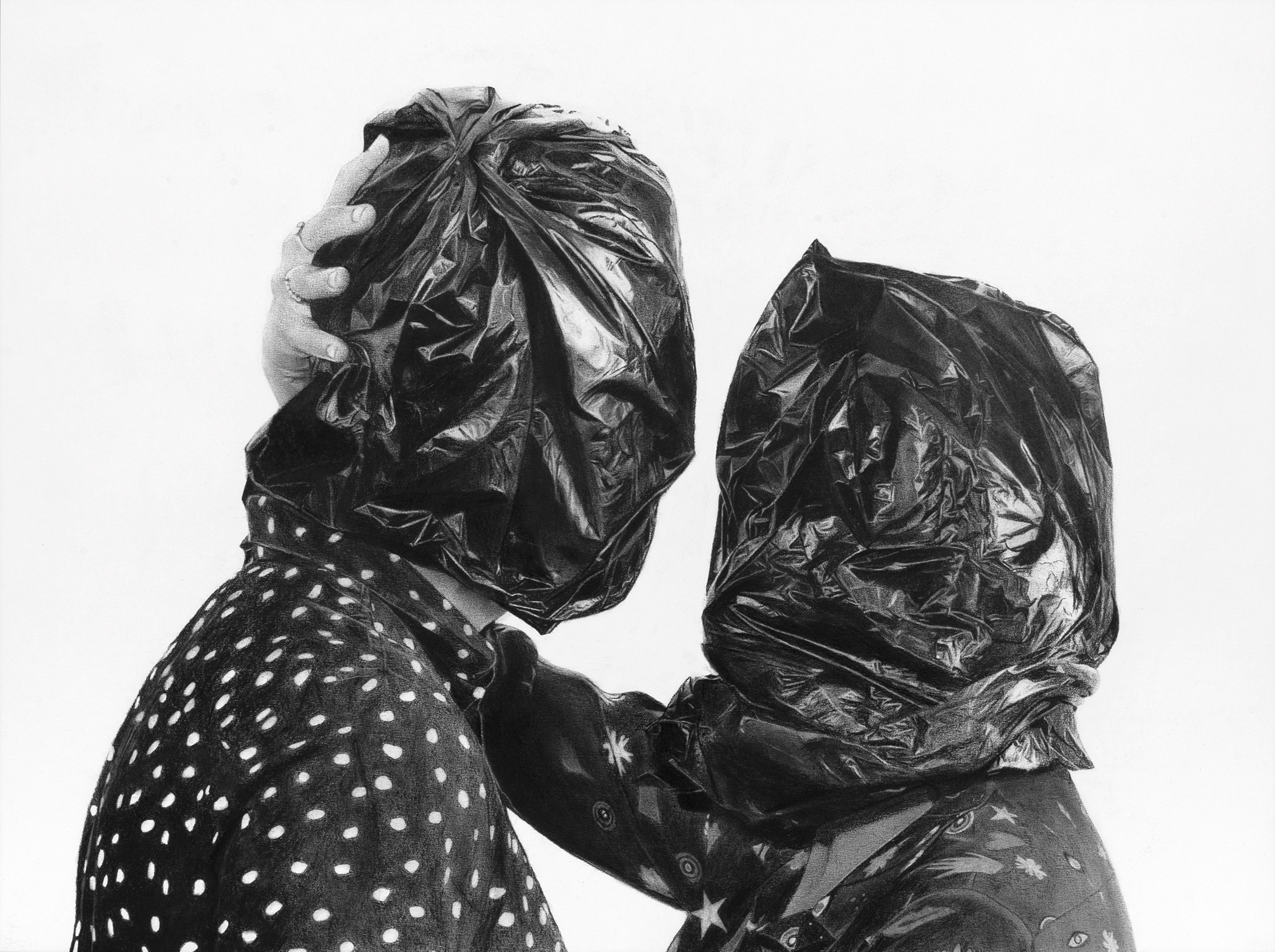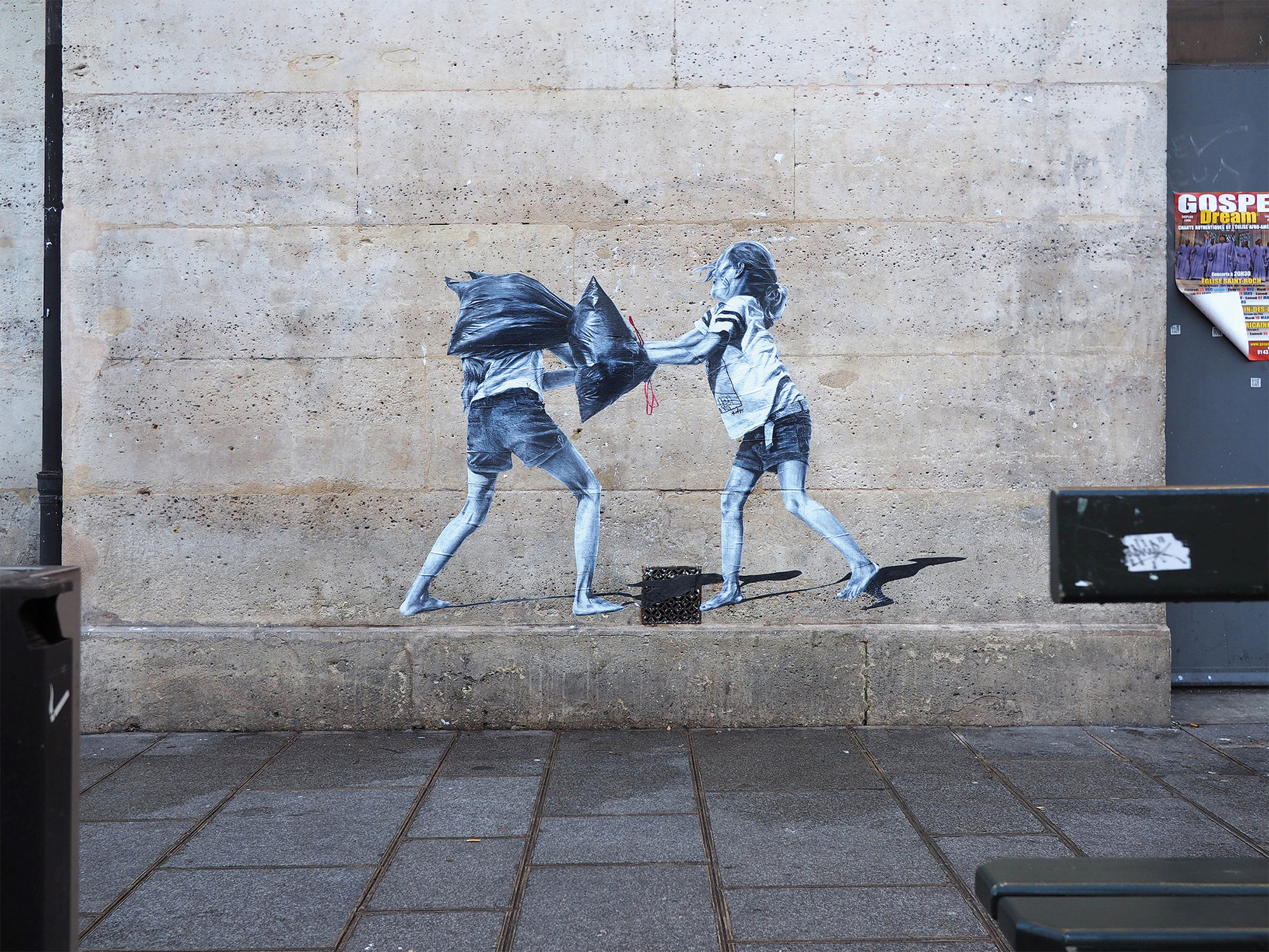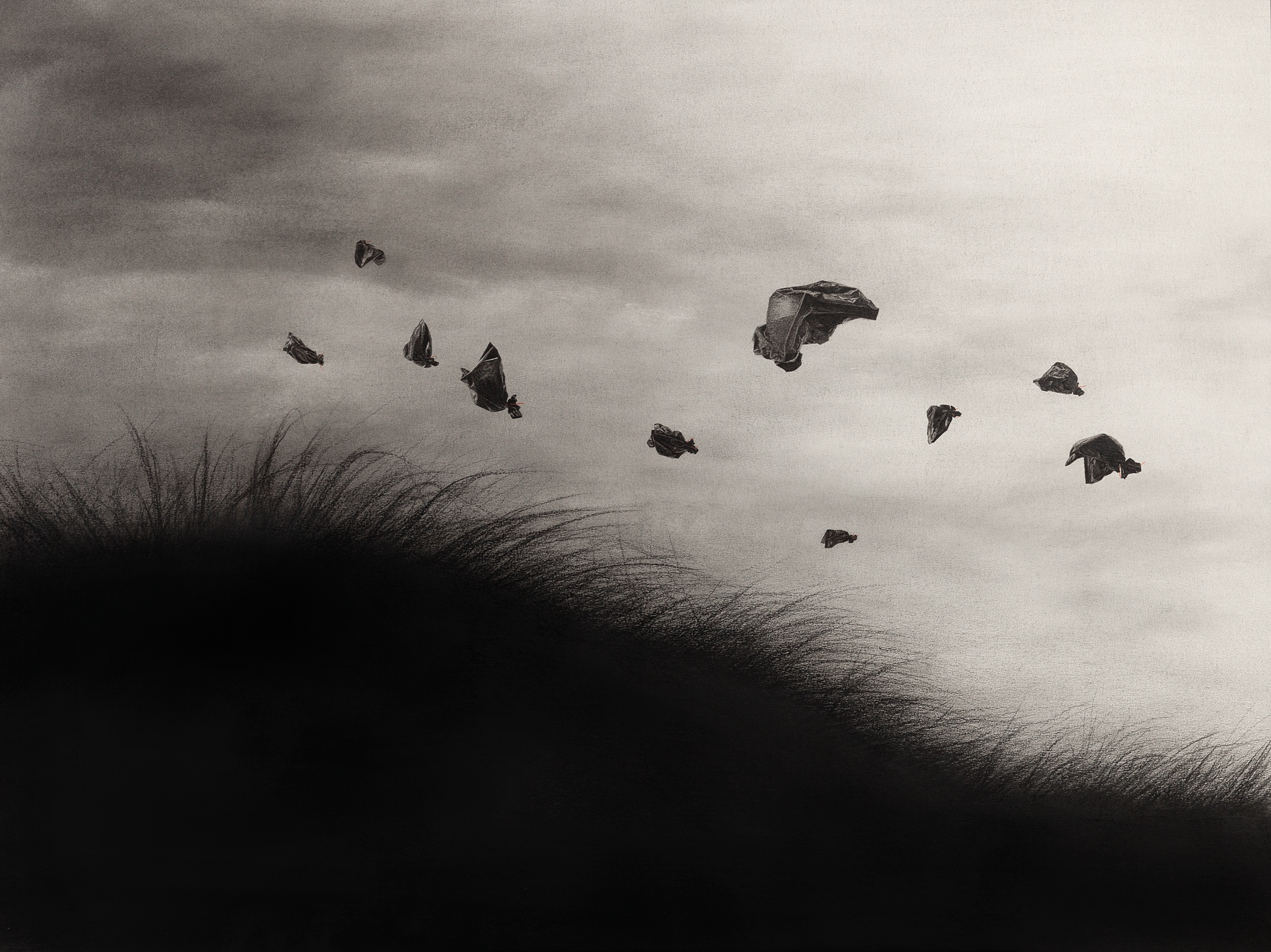 El dúo francés Paul Ressencourt y Simon Roche, más conocidos en el mundo del arte como Murmure Street, destacan el impacto humano en el medio ambiente a través de un mismo objeto, la bolsa de basura. Un objeto según ellos que se ha convertido en un símbolo de nuestra era y de nuestra civilización consumista, invadiendo nuestro día a día y nuestro entorno.