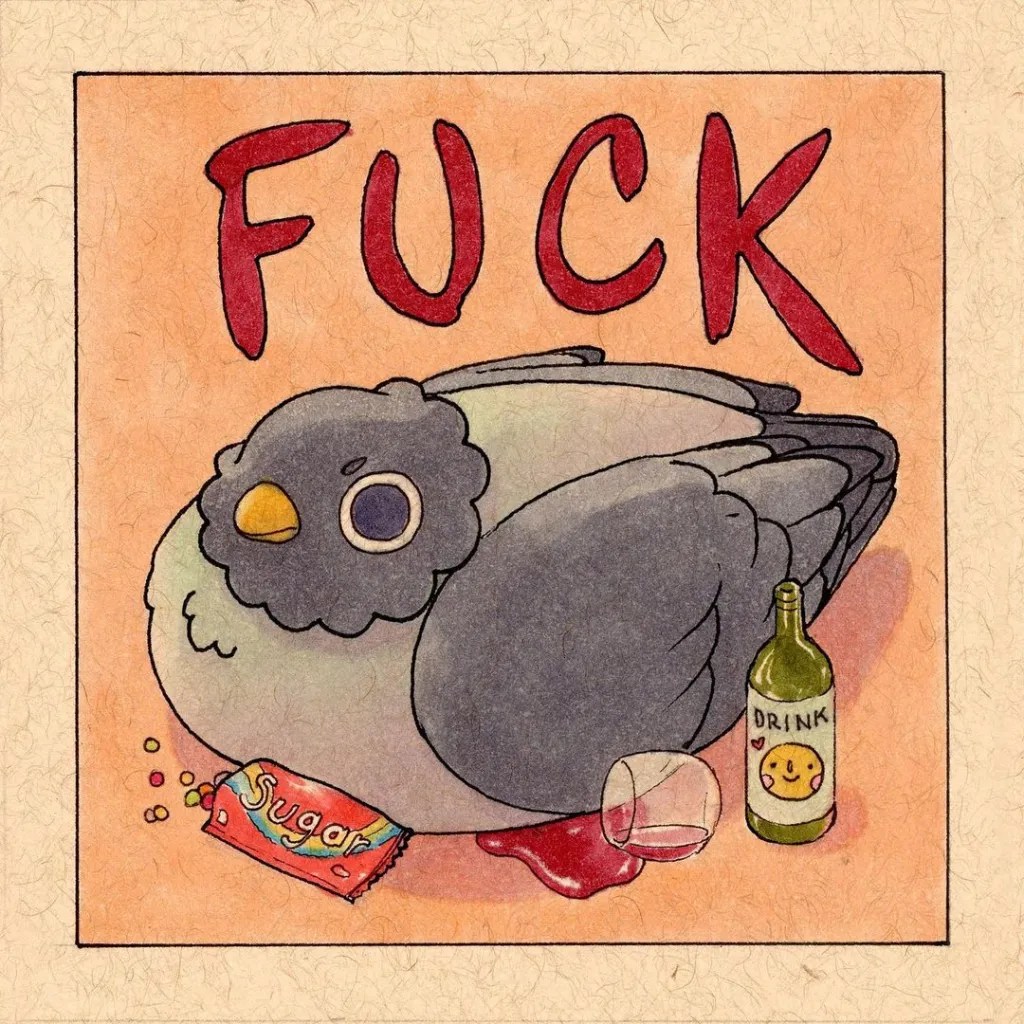 Las creaciones de Felicia se caracterizan porque en muchas de ellas hay protagonistas que se repiten como un ser humanoide, una especie de sombra negra, gusanos sonrientes, palomas… Debo admitir que las ilustraciones de las palomas me atraen bastante.