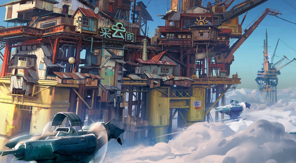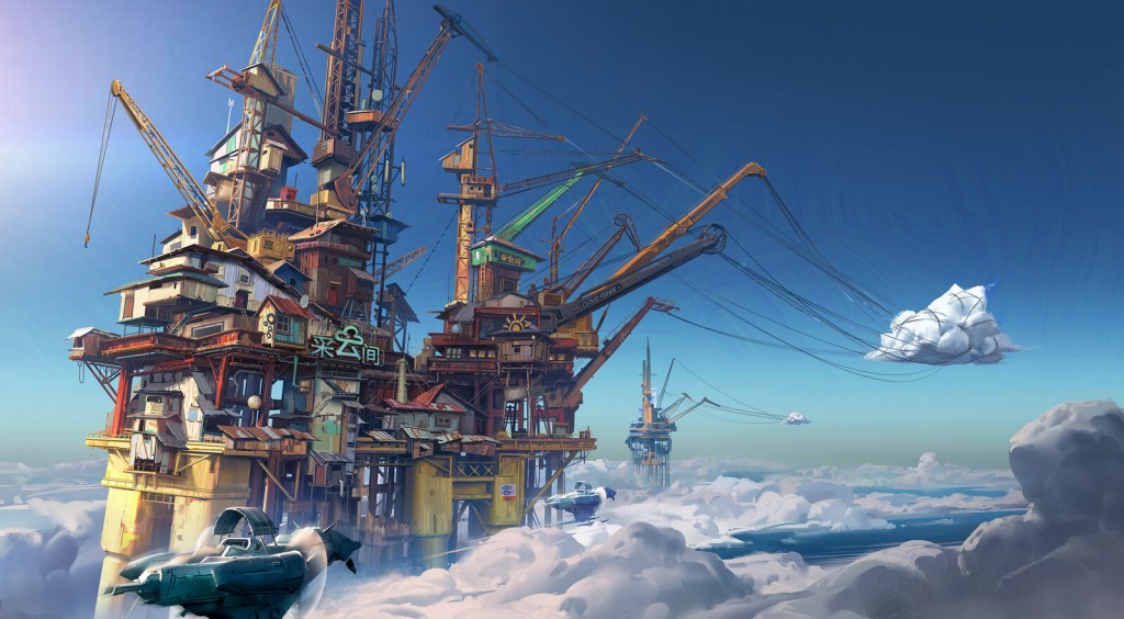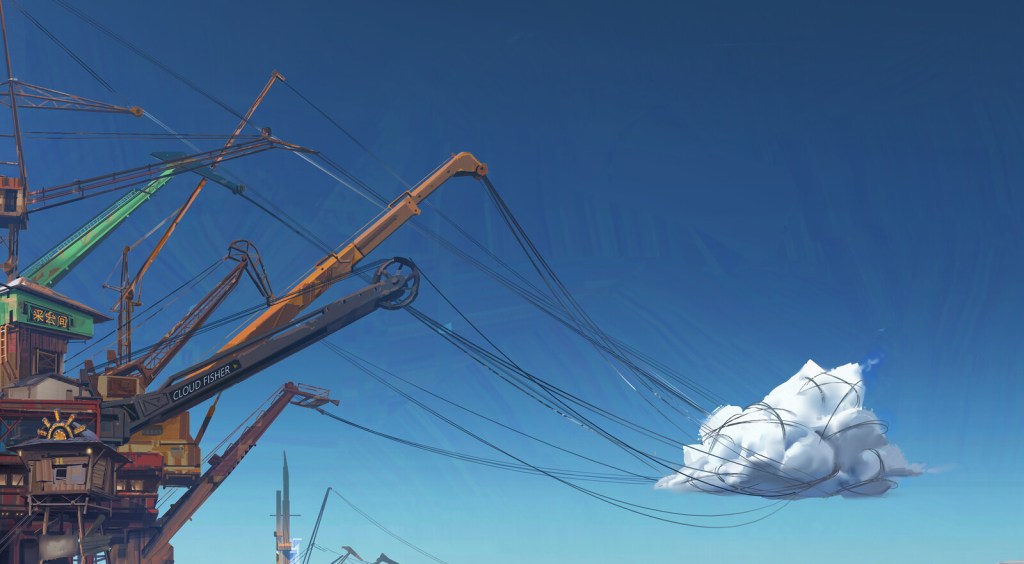 Me ha llamado la atención su creatividad a la hora de crear mundos distópicos como el titulado Cloud fishing: